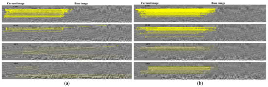 where represents the number of actual correct matching point pairs; denotes the number of incorrect matching point pairs; and is the theoretical number of correct matching point pairs. The higher the values of and , the stronger the algorithm’s capability to correctly match points.
