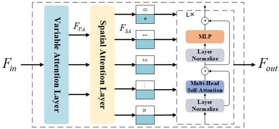 The structure of the ST-Transformer is shown in Figure 4, which contains a variable attention layer, a spatial attention layer, and a unimodal feature encoder. represents the feature vector after convolutional feature extraction, and represents the feature vector after encoder resolution enhancement.