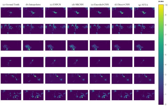 As can be seen from the experimental results, STTA outperforms newer networks on our dataset, such as Direct-CNN and Encoded-CNN. This may be because Encoded-CNN focuses only on feature extraction, while Direct-CNN focuses only on fast mapping, and both lack the ability to model global dependencies. In order to solve this problem, the ST-Transformer structure is specially designed in this paper so that the model can focus on different parts adaptively according to the correlation of input feature vectors and can pay more attention to and highlight important spatial locations or regions when processing spatial information.