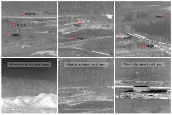 Backgrounds in infrared remote sensing images are often highly complex. As depicted in the first row of images, there are many sources of interference in the background that resemble the shape of the target. As shown in the second row, the low grayscale values and contrast of the target make it difficult to perceive.