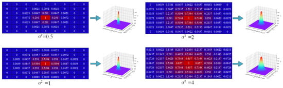 Here, and represent the horizontal and vertical coordinates of the target centroid. The hyperparameter determines the spread of the Gaussian formula, affecting the range of pixels with significant intensities in the centroid map. As shown in Figure 4, when is small, the high-energy region in the centroid map will be more closely concentrated around the target centroid, whereas when is large, the high-energy region will cover a wider range of pixels.