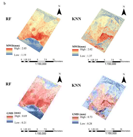 Predicted maps of SAS indices (MWD and GMD) based on both RF and k-NN algorithms are presented in (Figure 5).