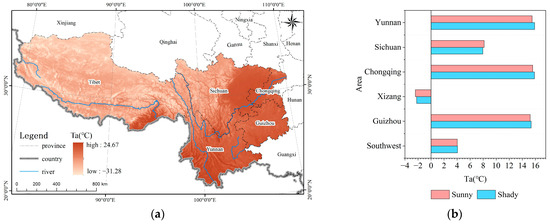 Distribution of Ta: (a) spatial distribution; (b) numerical statistics of Ta for shady and sunny slopes.