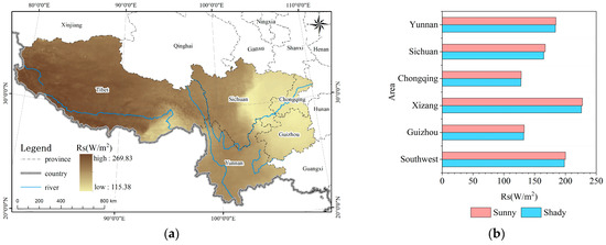 Distribution of Rs: (a) spatial distribution; (b) numerical statistics of Rs for shady and sunny slope.