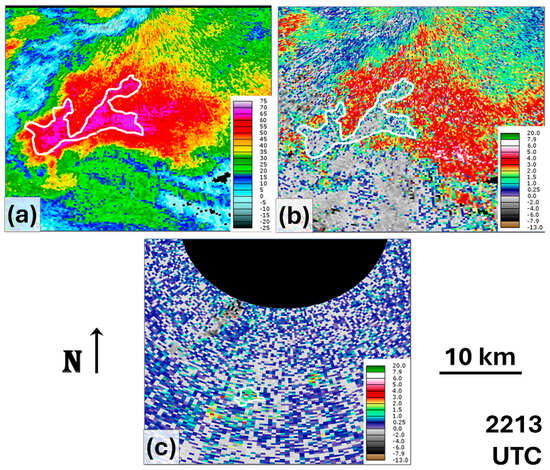 As in Figure 9, except at 2213 UTC when the storm centroid was ~20 km from the radar.