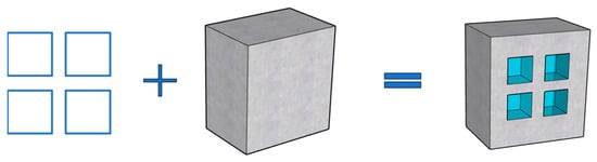 Considering the uniform structural arrangement of windows on the facade of a building, in the shape optimization phase, we will superimpose and fit the windows of the same group to obtain the most complete and accurate window outline, and match it to the center point of each, thereby addressing the differences in scanning accuracy, omissions, and interference from facade attachments. For each segmented object , the classic -shape algorithm is used to extract the contour boundary from the point cloud data, which can handle the concavity and convexity in the point cloud data, generating a polygonal shell to approximate the region occupied by the point cloud.