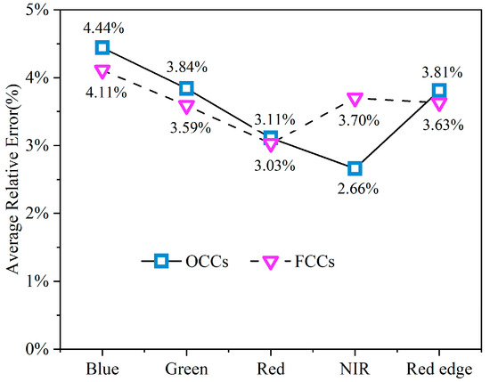 Average relative error of the ICRs with reflectance calculated based on OCCs and FCCs.