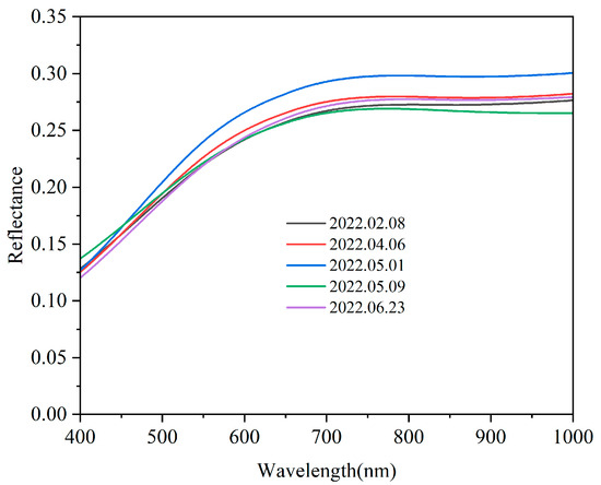 The HuanJing-2A (HJ-2A) satellite was successfully launched by a Long March 4B launch vehicle on 27 September 2020, with a 16 m payload consisting of four CCD cameras and a 5-year design lifetime [25]. A single CCD camera has a coverage width of more than 200 km, and four splices can achieve a total width of more than 800 km, with a revisit cycle of 4 days. The data acquisition capability, technical performance, and accuracy of remote sensing data have been greatly improved compared with those of the HJ-1A/B satellite [26]. In addition to the commonly used blue, green, red, and near-infrared (NIR) bands, a “red edge” band, which effectively captures the unique spectral characteristics of crops, has also been added, and it is of great significance to research on remote sensing [27]. Additionally, the CRESDA can freely download HJ-2A satellite images.