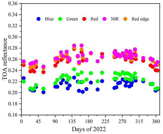 Table 3. RMSEs between the simulated and measured TOA reflectance of the random forest algorithm for DRCS in 2022.
