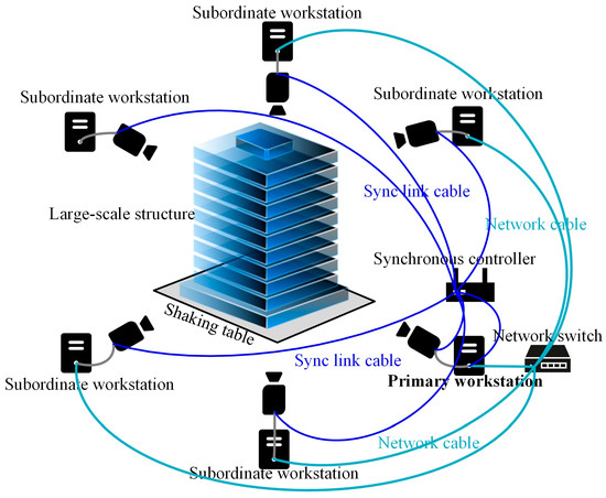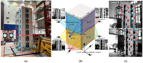 Shi, H.; Chen, P.; Liu, X.; Hong, Z.; Ye, Z.; Gao, Y.; Liu, Z.; Tong, X. Distributed High-Speed Videogrammetry for Real-Time 3D Displacement Monitoring of Large Structure on Shaking Table. Remote Sens. 2024, 16, 4345. https://doi.org/10.3390/rs16234345