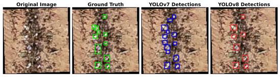 - Wang, C.Y.; Bochkovskiy, A.; Liao, H.Y.M. YOLOv7: Trainable bag-of-freebies sets new state-of-the-art for real-time object detectors. In Proceedings of the IEEE/CVF Conference on Computer Vision and Pattern Recognition, Vancouver, BC, Canada, 17–24 June 2023; pp. 7464–7475. [Google Scholar]