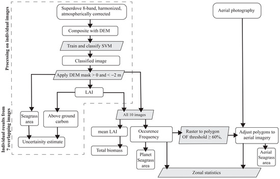 Flowchart outlining the processing steps for satellite and aerial imagery.