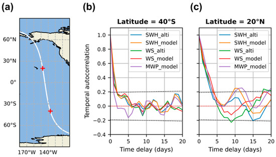3.2. Temporal Decorrelation Scales for SWH, WS, and MWP