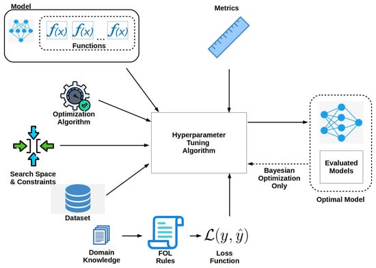 Hyperparameter tuning is the selection of values for the model’s non-learned parameters. The values selected can have a heavy impact on the model’s predictive performance, training time, and other performance measurements. Once the model and loss function are updated, the hyperparameters can be tuned. The process is usually conducted on a validation set—a set of hold-out data separate from the test and training set. To begin the tuning process, the user must decide what variables to tune. Neural networks typically have many hyperparameters such as the learning rate, an L2 regularization constant, and the number of layers used in the network. Because the focus of this work involves the creation of neuro-symbolic models, we focus on the hyperparameters that relate to the rules, in our case . After a variable is selected, the user must define the upper and lower bounds of the search space. Selecting bounds is usually done through a combination of intuition and trial and error. Once the user decides on bounds for the search space, one or more metrics must be chosen to gauge the model’s performance as the search parameters are varied. Common metrics include F1, accuracy, and total loss. The user also selects an optimization algorithm such as the Adam optimizer or plain stochastic gradient descent. The optimizer selected will also be used during the training process. Searching through the parameter space is an iterative process. Each iteration is known as a trial. The user decides the number of trials to run prior to starting the hyperparameter tuning algorithm. Our framework includes three algorithms for hyperparameter tuning, random search, grid search, and Bayesian optimization. Random search randomly selects points within the search space with a uniform distribution. Random search is shown to provide good results, especially for high-dimensional search spaces, which require a great deal of time to train. Random search provides near-optimum results with as few as 60 trials [53].