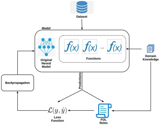 There are many ways to create neuro-symbolic models from vanilla deep neural networks; one of the most straightforward is semantic-based regularization. That is the method we use in this paper. As the name implies, SBR adds rules written as statements of FOL to the model’s loss function. See [36,50,51] for a more comprehensive discussion of SBR.