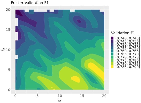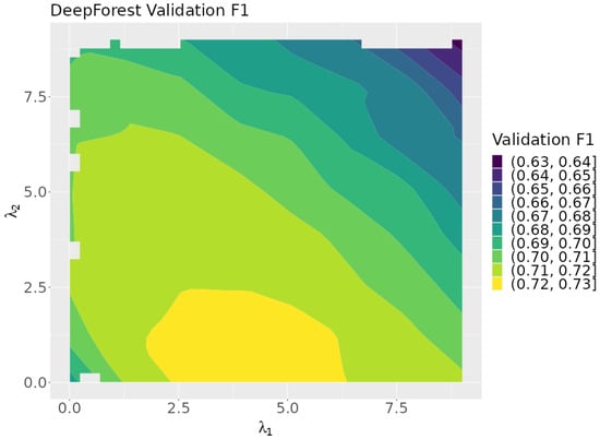 Figure 12 plots the neuro-symbolic model’s validation F1 scores over the rule lambda search space. Larger values correspond with higher validation scores, suggesting that rule 1 is more impactful than rule 2. This is surprising since rule 1 is for the black oak class, which has the fewest number of instances in the dataset. The highest validation scores are concentrated in the lower right corner of the search space, which corresponds to the area focused on by the Bayesian optimization algorithm.