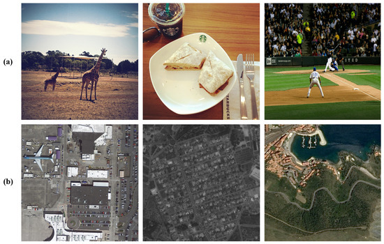 Comparison of natural images and remote sensing images: (a) natural images; (b) remote sensing images.