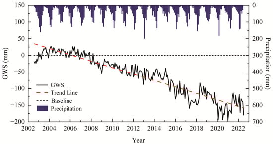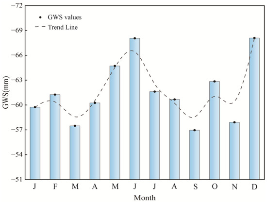 Average monthly GWS in the Loess Plateau from 2003 to 2022.