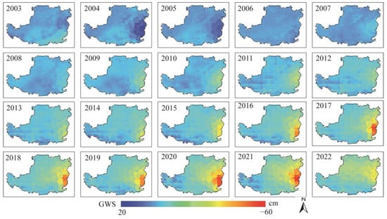 Annual average GWS in the Loess Plateau for the period 2003 to 2022.