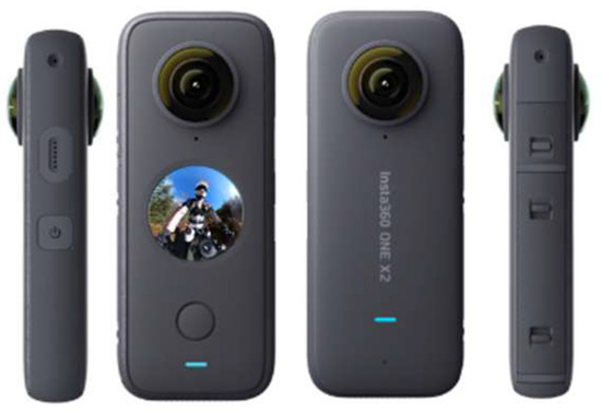 The Insta 360 One X2 camera, as presented on the website https://www.insta360.com/product/insta360-onex2, (accessed on 30 August 2023).