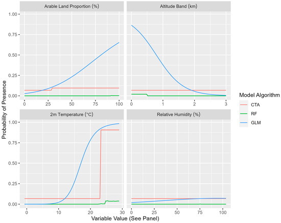 - Thuiller, W.; Georges, D.; Gueguen, M.; Engler, R.; Breiner, F.; Lafourcade, B.; Patin, R. biomod2: Ensemble Platform for Species Distribution Modeling (R 4.2-2). 2023. Available online: https://CRAN.R-project.org/package=biomod2 (accessed on 4 November 2024).