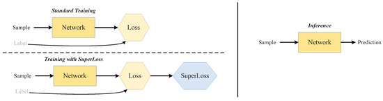 Therefore, in Superloss, the confidence parameter does not need to be learned sample by sample but is updated with the state of the training samples. Additionally, Superloss has only one input parameter and can be easily added to the original task loss without changing other training operations. Backpropagation starts with Superloss. The expression for Superloss is as follows: