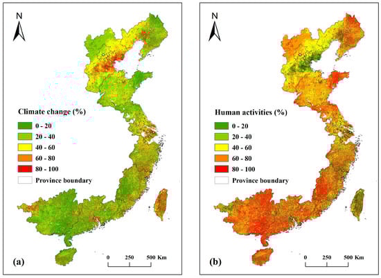 Contribution rate distribution of CC and HA: (a) Climate change; (b) Human activities.