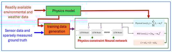 Hybrid loss functions have been effectively applied in agriculture and environmental monitoring, where sensor data often faces interruptions and noise. For instance, Faruk et al. [] demonstrated the utility of hybrid models for water quality prediction, combining neural networks with autoregressive techniques. Bai et al. [] and Ojo et al. [] also used hybrid deep learning models in agriculture, blending physical laws with empirical data to improve predictive accuracy. Additionally, Jawad et al. [] reviewed wireless sensor networks and hybrid modeling in precision agriculture, underscoring the value of integrating theoretical knowledge to enhance model reliability.