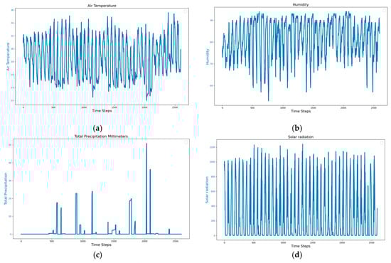 - Humidity (Figure 14b): High humidity levels can impact evaporation rates and indirectly affect the water quality in the aquaculture tanks.