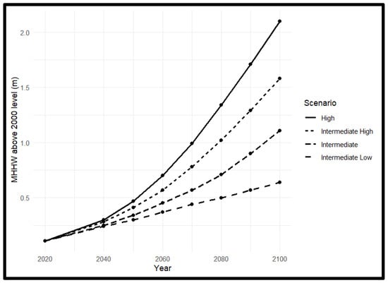 - Oppenheimer, M.; Glavovic, B.C.; Hinkel, J.; van de Wal, R.; Magnan, A.K.; Abd-Elgawad, A.; Cai, R.; Cifuentes-Jara, M.; DeConto, R.M.; Ghosh, T.; et al. Sea Level Rise and Implications for Low-Lying Islands, Coasts and Communities. In IPCC Special Report on the Ocean and Cryosphere in a Changing Climate; Pörtner, H.-O., Roberts, D.C., Masson-Delmotte, V., Zhai, P., Tignor, M., Poloczanska, E., Mintenbeck, K., Alegría, A., Nicolai, M., Okem, A., et al., Eds.; Cambridge University Press: Cambridge, UK; New York, NY, USA, 2019; pp. 321–445. [Google Scholar] [CrossRef]