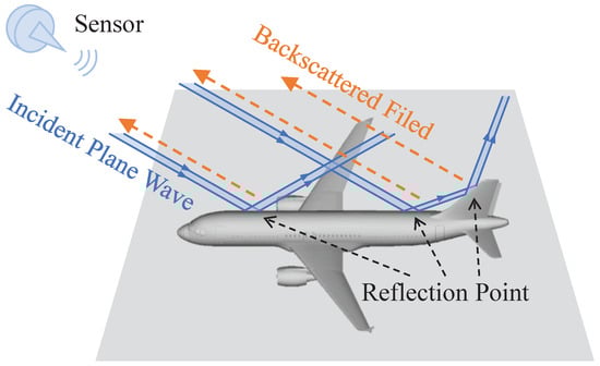 The far-field scattering of a target is the sum of the scattering field contributions of all ray tubes reflected from the target’s surface. In this context, . According to [17], the far-field scattering formula is: