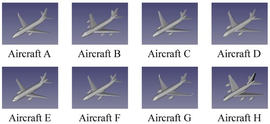 In the RCS images, strong scattering is predominantly observed at the leading edges of the wings and winglets, consistent with the scattering patterns in real SAR images. Additionally, scattering effects are also visible on the fuselage due to its modeling as PEC material. While this differs slightly from real-world SAR images, it highlights the ability of the proposed method to capture the general scattering characteristics of metallic surfaces under comparable conditions. These observations validate the effectiveness of the SBR method in generating physically consistent results. Furthermore, compared with other aircraft models, the RCS images of Aircraft H exhibit certain unique features. Specifically, the scattering intensity distribution is more uniform rather than concentrated at specific points. This could be attributed to Aircraft H’s significantly higher number of triangular facets and its larger model volume (detailed parameters are shown in Table 1). These factors contribute to a broader scattering distribution and lower relative contrast. This difference also impacts the final image translation results.