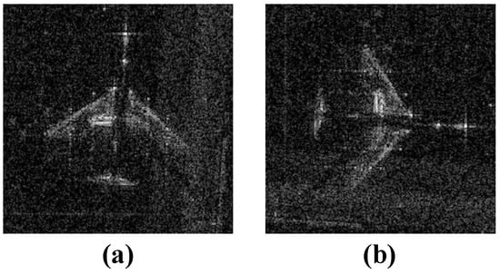 In the simulated SAR image datasets RCS2SAR-30/40/50, the simulated SAR images after image translation exhibit more texture features and speckle noise closer to real SAR images. This is due to the precise calculation of the target’s RCS by the SBR algorithm and a reasonable noise model, making it easier for cycle GAN to map from the RCS image domain to the SAR image domain based on given geometric and amplitude information. Additionally, some simulated SAR images show irregular short linear distributions of strong scattering noise. This is because the background of real SAR images is not always homogeneous noise but can include strong scattering distributions caused by interference objects such as runways and terminal bridges. These interfere with cycle GAN’s learning of the SAR image background environment, resulting in similar elements in the generated simulated SAR image backgrounds. Fortunately, such random interference in the background environment helps improve the robustness of the target recognition network.
