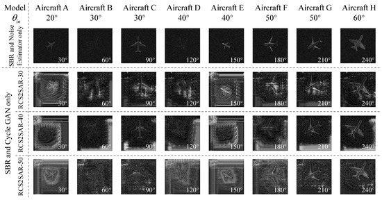 - SBR and cycle GAN only: These experiments perform image translation on the simulated RCS images based on the SBR-only D/T but do not add noise.