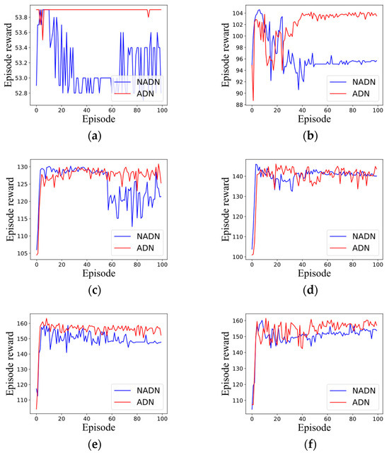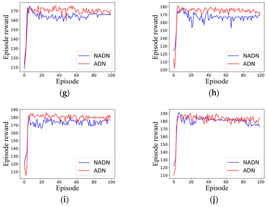 Table 5 presents the training times for ADN and NADN. For scenarios with different numbers of tasks, the decision networks were trained using 100 episodes. The training time increases with an increase in the number of tasks. ADN exhibits worse time efficiency for training because of its more complex network than that of NADN. However, as the training process can be implemented in advance, the training time is completely acceptable.