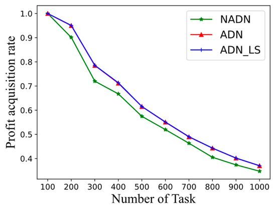 Average profit acquisition rates of NADN, ADN, and ADN_LS.
