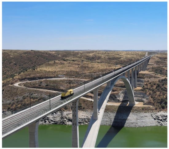 - Manterola, J.; Gil, M.Á.; Martínez, A.; Fuente, S.; Martín, B.; Blanco, L. Railway Arch Bridge over the Tajo River in the Alcántara Reservoir. In Proceedings of the Engineering for Progress, Nature and People, Madrid, Spain, 3–5 September 2014. [Google Scholar]