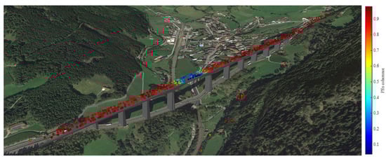 After the instances are identified, their composing points can be analyzed further to detect some of the damages mentioned above, as reported by Kim et al. [] in the case of concrete bridges, or to proceed with further geometric analysis. For example, in relation to this last trend, Sánchez-Rodríguez et al. [] presented an approach for fully automated inspection of piers in masonry arch bridges. The analysis of out-of-plane deformations in masonry arch bridges (spandrel walls and arches) was presented by the same authors in a masonry arch bridge in Portugal [].