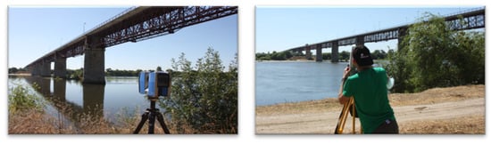 In [], when laser scanning was still a young technique, the authors already foresaw its impact as a 3D measuring technique for many different applications. Later, Riveiro and Lindenberg [] revised the advances suffered by laser scanning in the last decade, where bridges were among the most remarkable applications. Recently, Rashidi et al. [] published a revision of the use of terrestrial laser scanning in bridge monitoring. In fact, it seems clear that when focusing on the applications to civil engineering, terrestrial laser scanning technologies (both static and mobile) have changed the vision of how to conduct condition surveys of existing infrastructure assets. This technology noticeably impacted the modeling and inspection of existing bridges due to its ability to massively, accurately, and efficiently collect 3D geometry data.