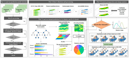 26. Li, Y.; Yao, S.; Jiang, H.; Wang, H.; Ran, Q.; Gao, X.; Ding, X.; Ge, D. Spatial-temporal evolution and prediction of carbon storage: An integrated framework based on the MOP-PLUS-InVEST model and an applied case study in Hangzhou, East China. Land 2022, 11, 2213. [Google Scholar] [CrossRef]
