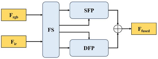 In existing multimodal fusion object detection methods, image feature-level fusion methods can be divided into early fusion, mid-fusion, and late fusion according to the fusion stage. Studies have shown that mid-fusion outperforms other fusion methods [25,26,27,28]. Traditional fusion methods, such as channel concatenation, are simple but have limited in effectiveness. Zhou et al. [29] proposed a Modality Balance Network (MBNet), which fuse features through Differential Modality-Aware Fusion (DMAF) and an illumination-aware feature alignment module. However, differential methods can only extract differential features between modalities, ignoring other features. Subsequently, various innovative methods have been proposed to enhance feature fusion effects, such as the dual-branch YOLOv3 brightness-weighted fusion network [30], the self-attention feature fusion module and feature interaction in YOLO-MS [31], and the fusion module that adaptively adjusts feature weights [28,32], as well as the Attention-based Feature Enhancement Fusion Module (AFEFM) that combines differential features with original features through cross-concatenation [33]. Although these methods have their unique characteristics, they often overlook the value of common information between modalities and mostly focus on local feature information, lacking interaction with distant features. Researchers have then attempted to combine Transformer with CNNs [19,34], which improves detection accuracy but significantly increases model complexity, hindering practical deployment [35]. Fang et al. [36] achieved efficient multimodal feature fusion with low parameters by distinguishing between common and differential features, but there is still room for improvement in their feature separation method.
