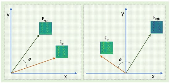 This module evaluates the similarity between corresponding channels of visible and infrared features by treating each of them as a vector and computing their cosine similarity based on the angle between the vectors, as illustrated in Figure 3, using Equation (1).