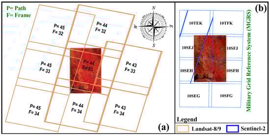Lansat-8/9 (a) and Sentinel-2 (b) image footprints in the study area.