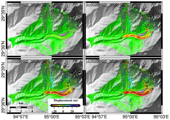 Finally, glacier motion is a long-term evolutionary process. The short-term glacier motion analysis limits the ability to infer long-term glacier movement patterns. So it is essential to obtain much more remote sensing data with a longer period for long-term deformation monitoring to assess the risk of glacier-induced geohazard chains in the future.
