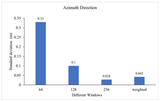 Additionally, we extracted the offset results from stable areas for accuracy assessment, selecting locations as shown in Figure 1b. The standard deviations of the azimuth results for different methods are presented in Figure 11. The standard deviations of the azimuth deformation exhibit exponential decay as the window size increases.