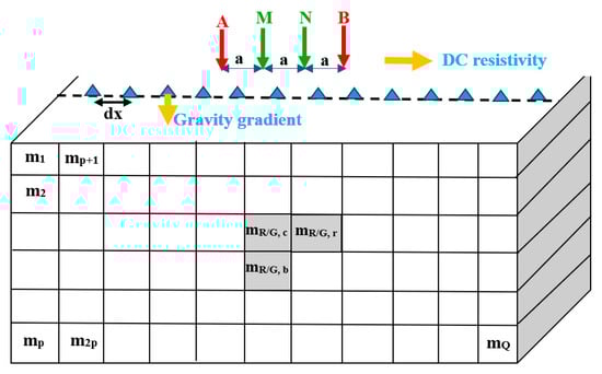 The terms and represent the resistivity and density models, respectively. Expanding the variable results in the following equation: