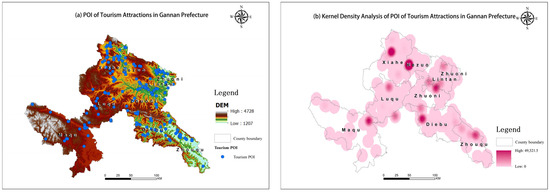 Spatial distribution of tourism attractions’ POI in Gannan Prefecture.
