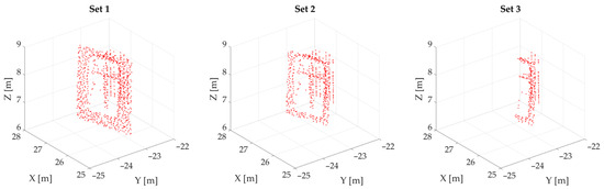 The accuracy of the fit of the estimated wall plane into the raw observations expressed as is provided in Table 3 for all the sets considered. It is assumed that for set 1, for set 2, and for set 3, which is the number of the chosen points describing the wall.