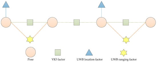 Since VIO can provide a very accurate estimate in a short amount of time, the VIO optimization factor is used to construct the visual inertial odometry residual term using the relative pose between two successive frames obtained by VIO. Define the error between the observed UWB coordinate value and the predicted value as the UWB factor term, where the predicted value is the coordinates obtained by VIO.