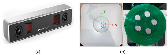 Equipment related to experimental testing: (a) binocular camera; (b) UWB base station.